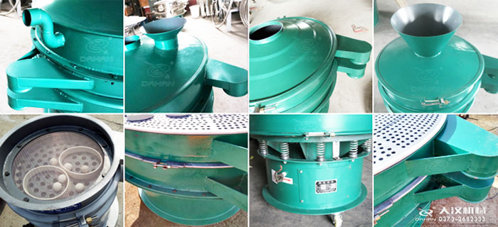 DH-1200-4p型振動篩為直徑1200mm型四層五出口碳鋼材質旋振篩,網架結構為子母網分離式,整機噴漆。
